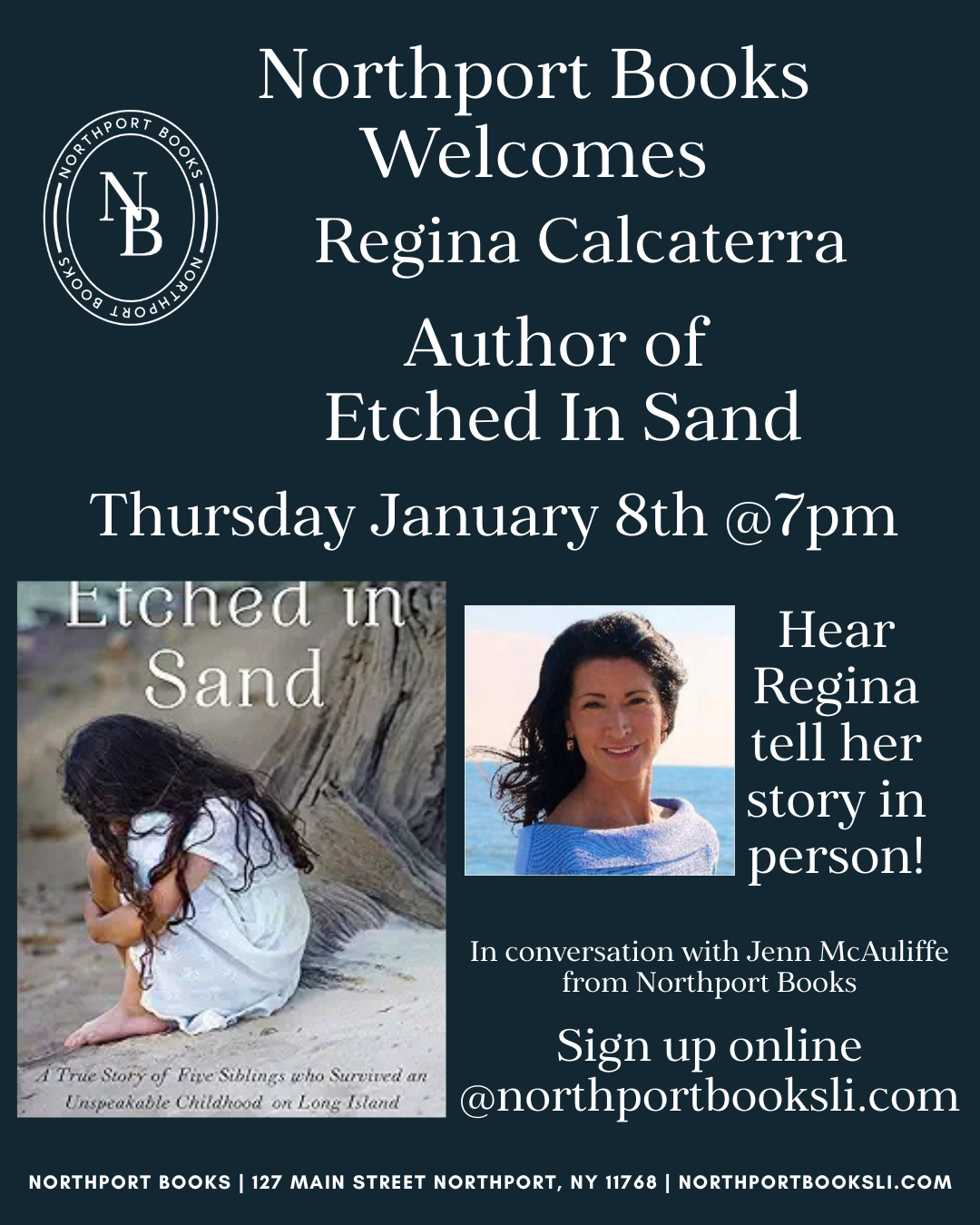 We’re thrilled to welcome Regina Calcaterra, author of Etched in Sand, for a special event on January 8th at 7:00 PM!