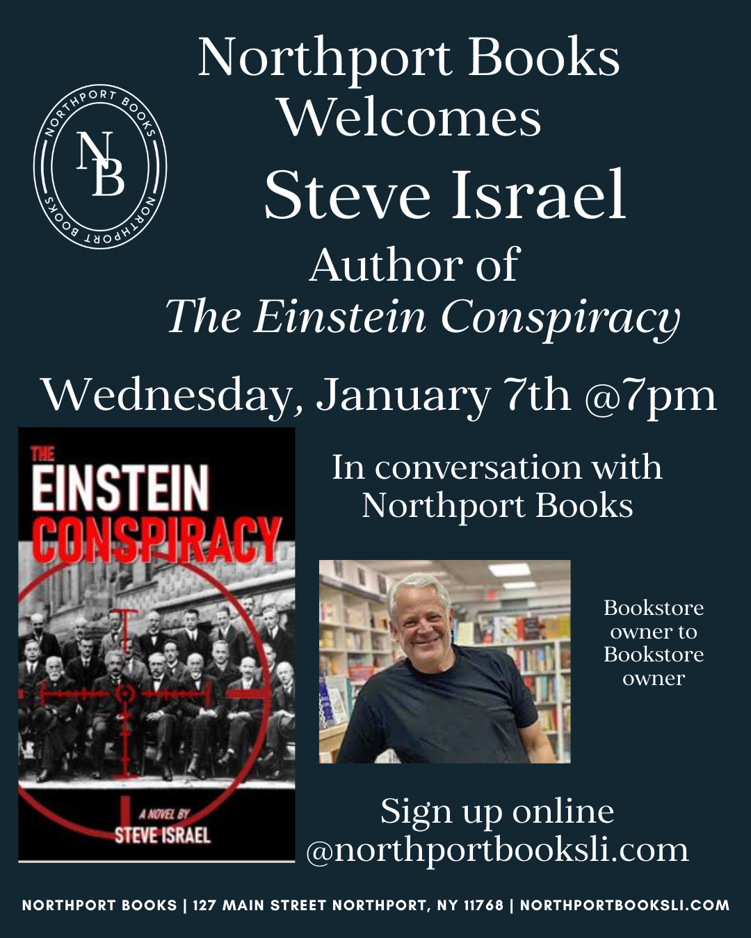 Join us for an exciting evening with author Steve Israel as he discusses his thrilling new book The Einstein Conspiracy! 🧠💥