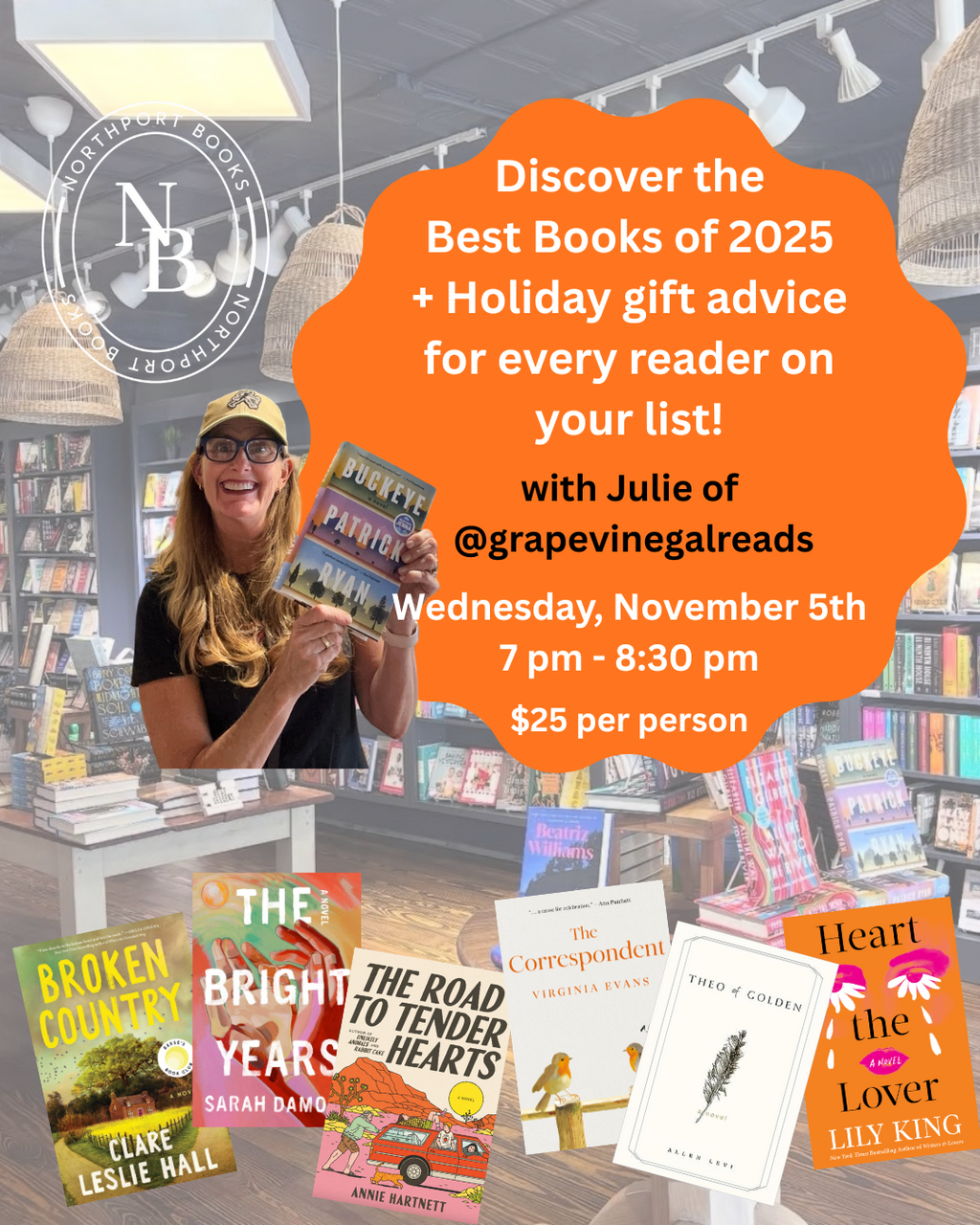Join us for BOOK TOK Live at Northport Books with the amazing Julie from @grapevinegalreads! π₯π¬