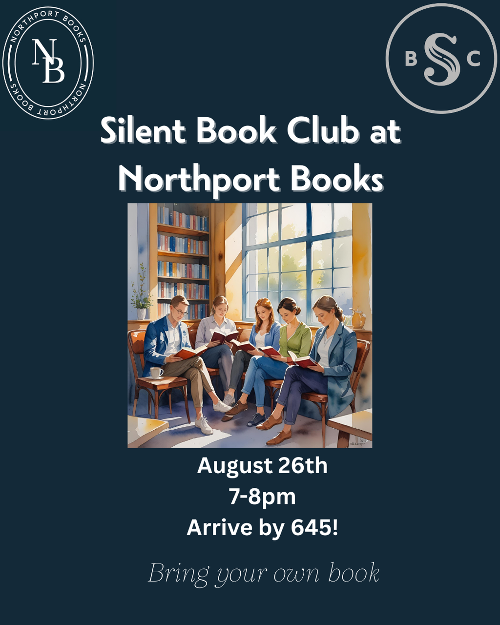 We'll meet at Northport Books on Tuesday, August 26 from 7-8pm to read in silence. Bring your own book!